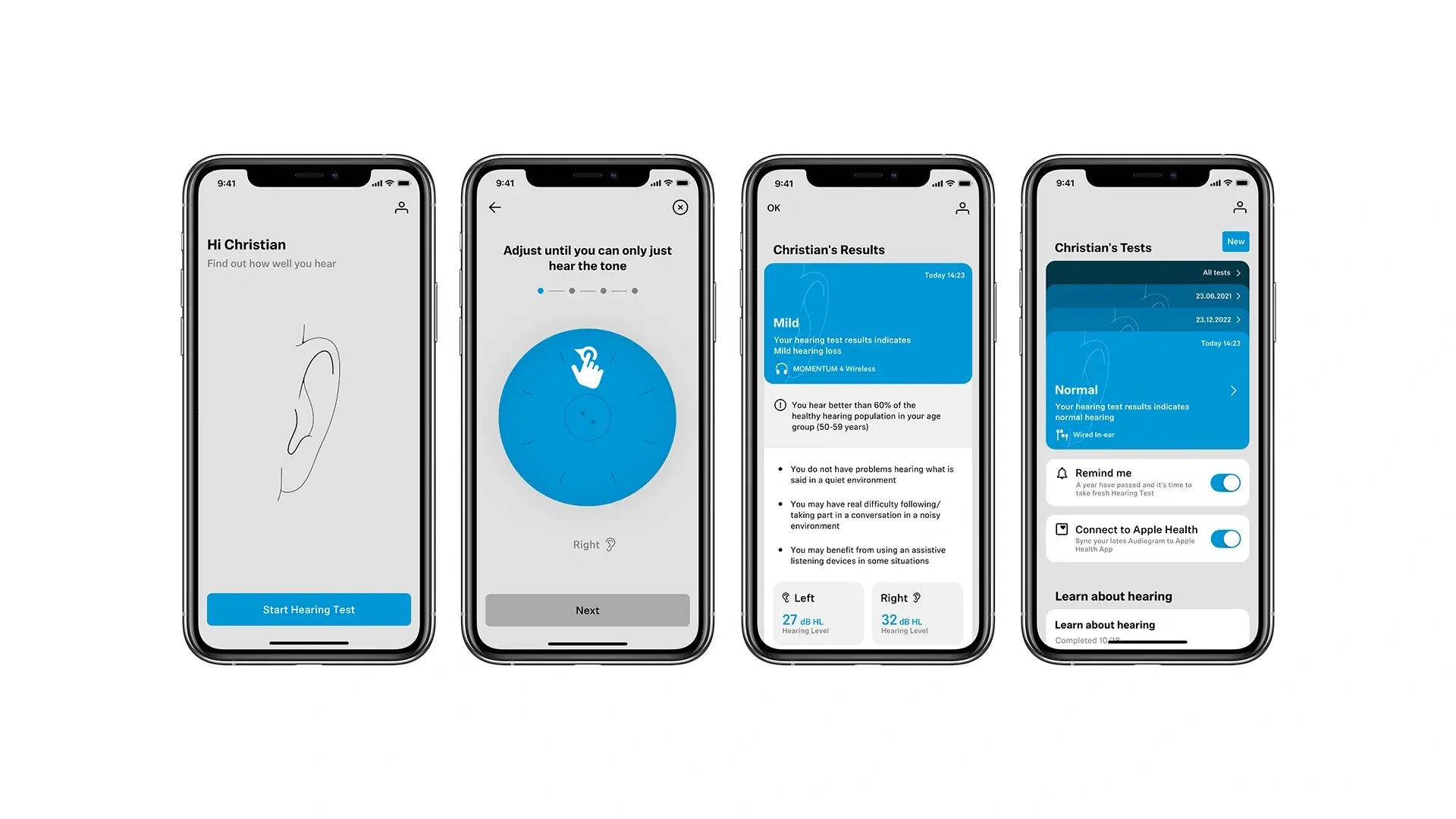 Sennheiser Hearing Test App giver også mulighed for at følge med i, hvordan hørelsen ændrer sig over tid.