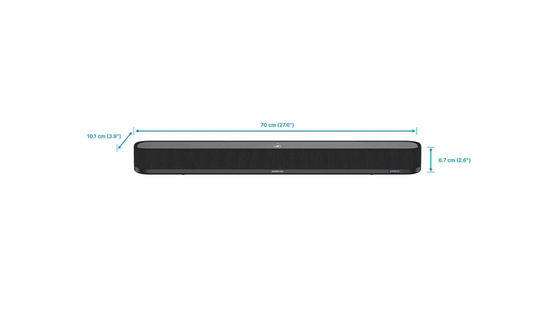 Con un diseño a la altura de su increíble calidad de sonido, la AMBEO Soundbar Mini se integra en cualquier espacio y cuenta con una placa superior en ángulo para una mejor interacción con el dispositivo, mientras que una barra LED dinámica añade un toque mágico.