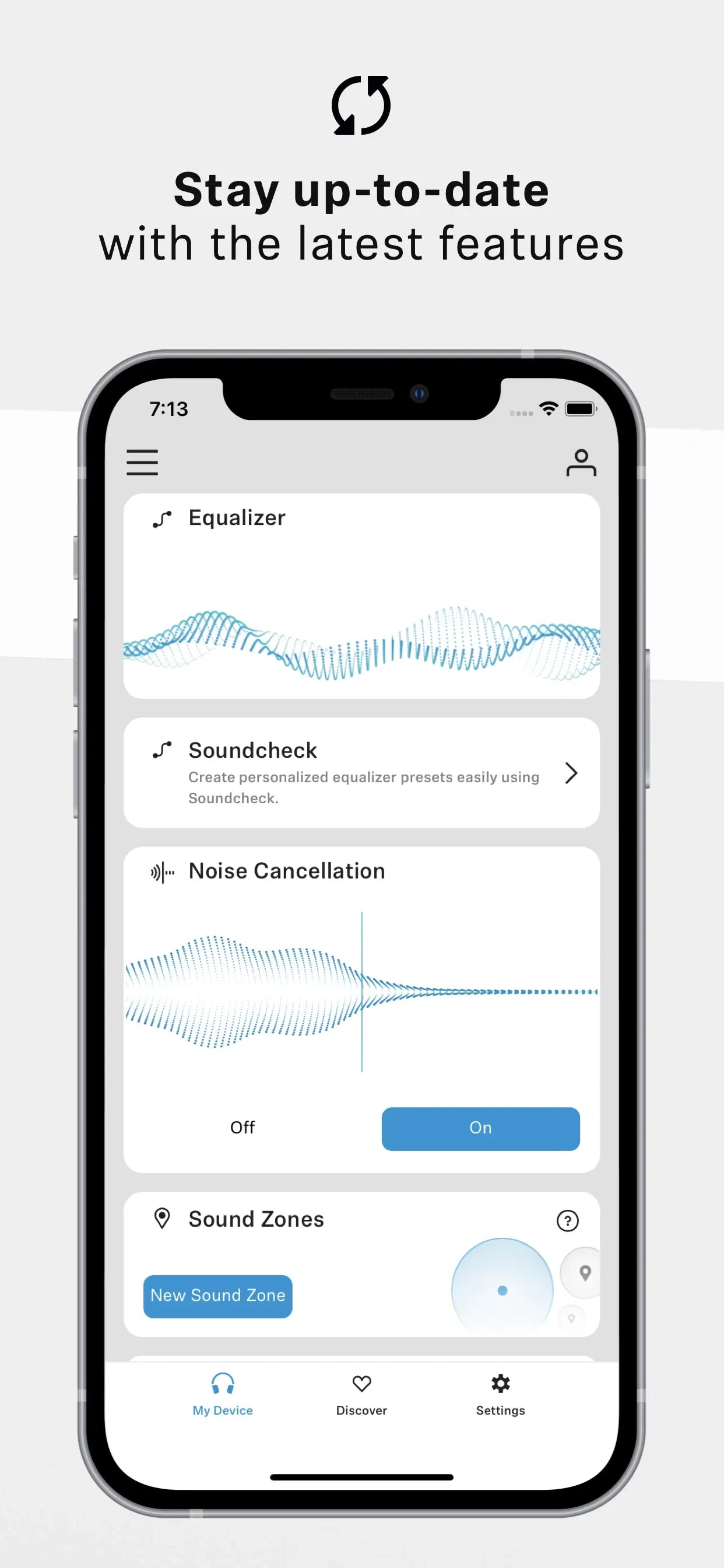 Nuestra aplicación Smart Control pone en la palma de tu mano un control y una personalización del sonido sin esfuerzo. Diseñada para tus auriculares inalámbricos Sennheiser* y barras de sonido AMBEO, ofrece interesantes funciones como Sound Check, que te ayuda a descubrir el mejor preajuste de ecualización para tus gustos, y Sound Zones, que adapta el sonido y la configuración a tu ubicación. La aplicación también proporciona cuentas de usuario para que sea más fácil disfrutar del sonido a tu manera en todos tus dispositivos.