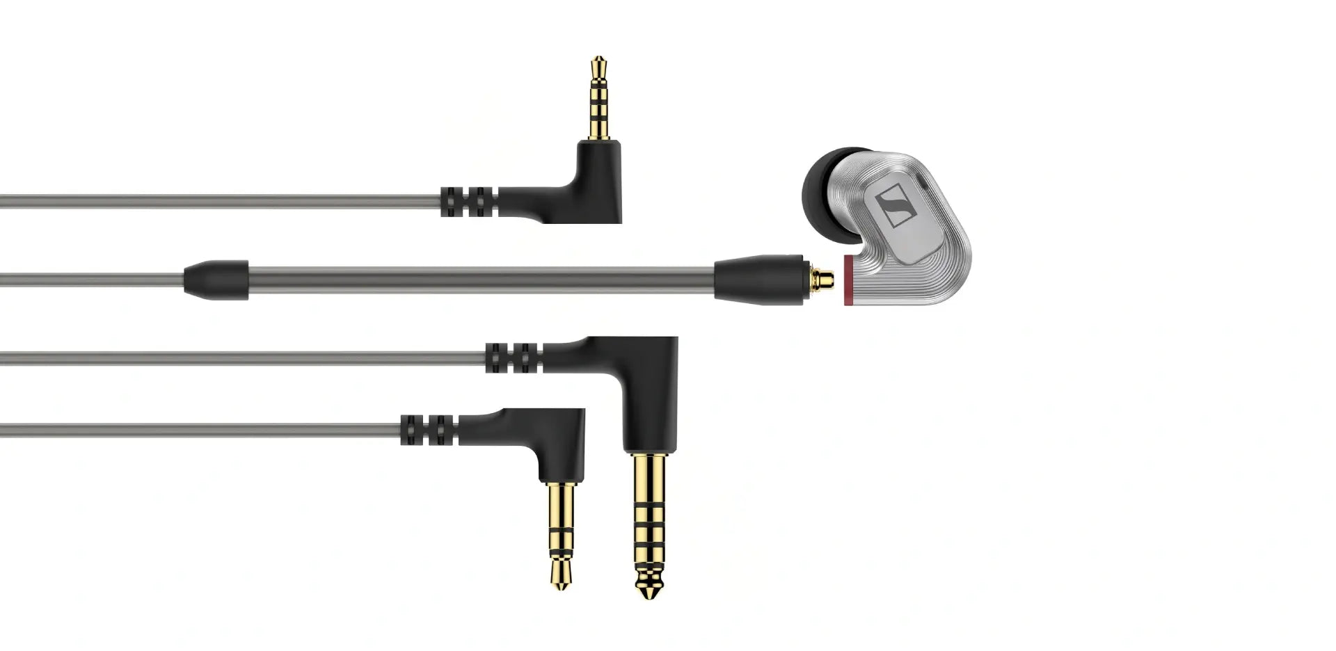 De vergulde Fidelity+ MMCX-connectoren zorgen ervoor dat je altijd goed contact hebt. Elke aansluiting zit in een verzonken, 4,8 mm brede aansluiting onder het oppervlak van de behuizing, wat zorgt voor trekontlasting. De kabels zelf zijn versterkt met para-aramide, zodat ze tegen duizenden buigcycli kunnen. Maar dat hoeft niet als je ze in het meegeleverde etui bewaart. Sluit ze aan op vrijwel elke digitale audiobron met de 3,5 mm stereoplug, zoals hoofdtelefoonversterkers, laptops en audio-interfaces. Elk paar IE 900's wordt ook geleverd met symmetrische 2,5 mm- en 4,4 mm-kabels om rechtstreeks aan te sluiten op hifi-componenten met gebalanceerde uitgangen. Want als je op zoek bent naar het meest natuurlijke en meeslepende geluid, telt elk detail.