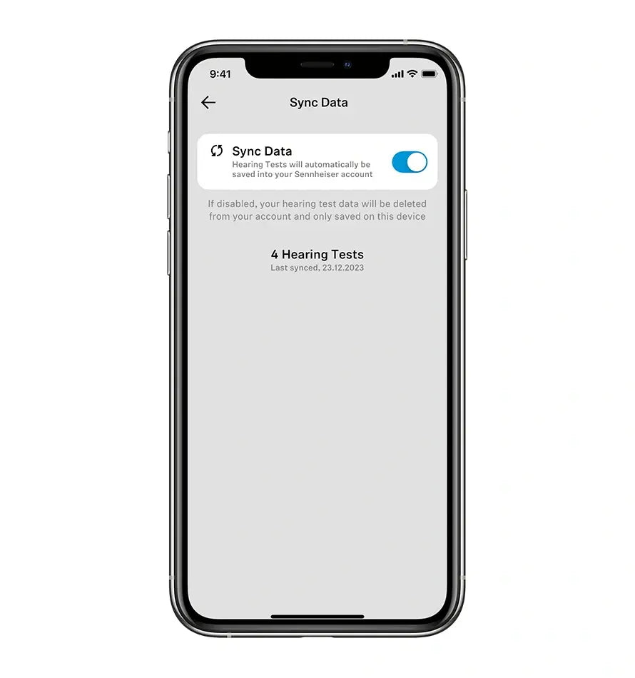Genom att registrera ett Sennheiser-konto eller logga in med ett befintligt konto får du tillgång till tidigare testresultat och kan ladda upp dem till Apple Health samt få en påminnelse när det är dags att göra ett nytt test. Allt detta hjälper dig att övervaka din hörselhälsa.